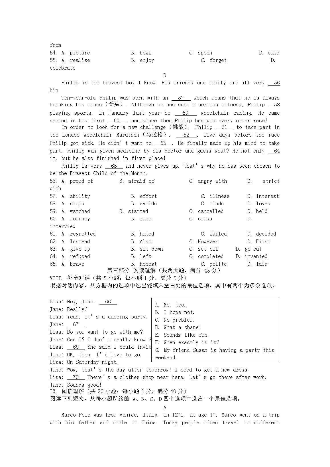 【文档名称】 2016年安徽亳州中考英语真题及答案(Word版).doc
