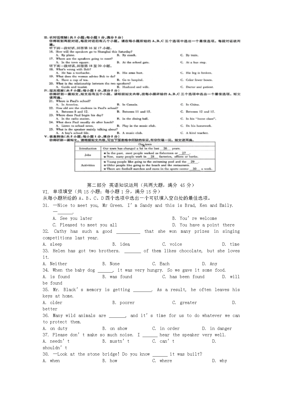 【文档预览】 无忧考网整理发布2016年安徽亳州中考英语真题及答案(Word版),前五页预览如下: