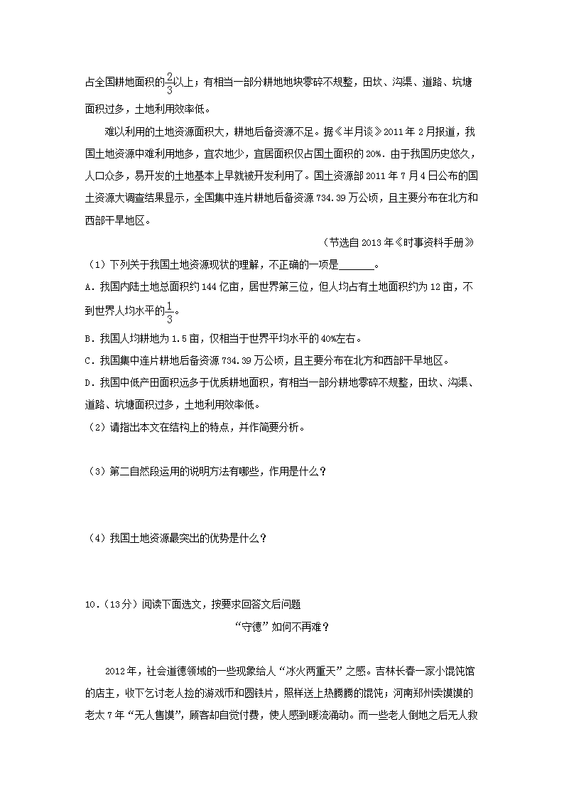 【文档名称】 2013年贵州黔东南州中考语文真题及答案(Word版).doc