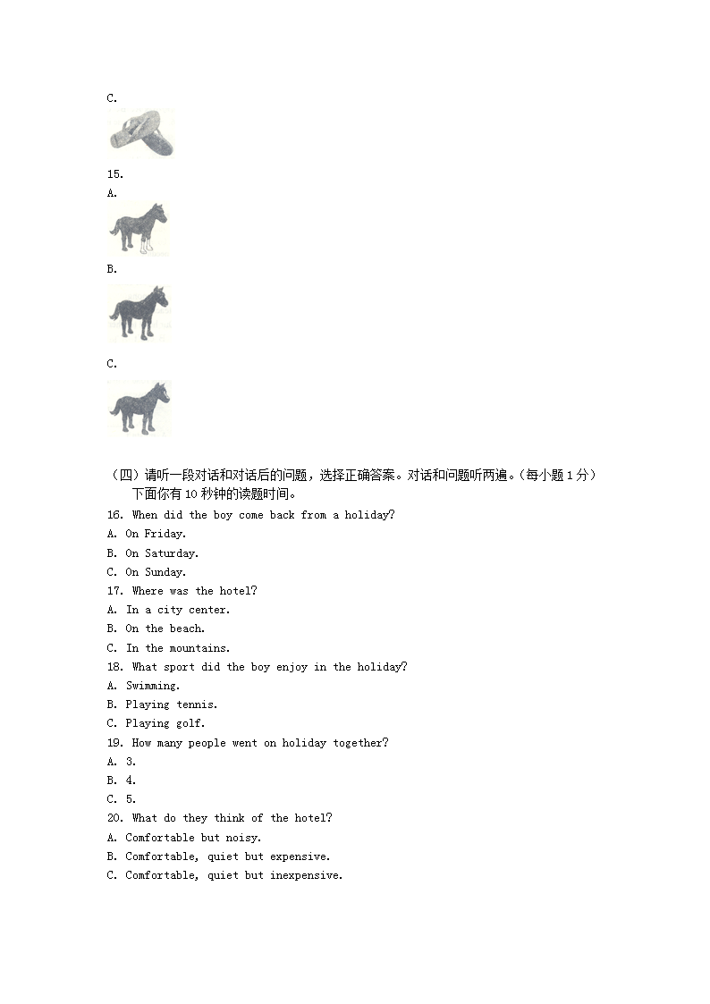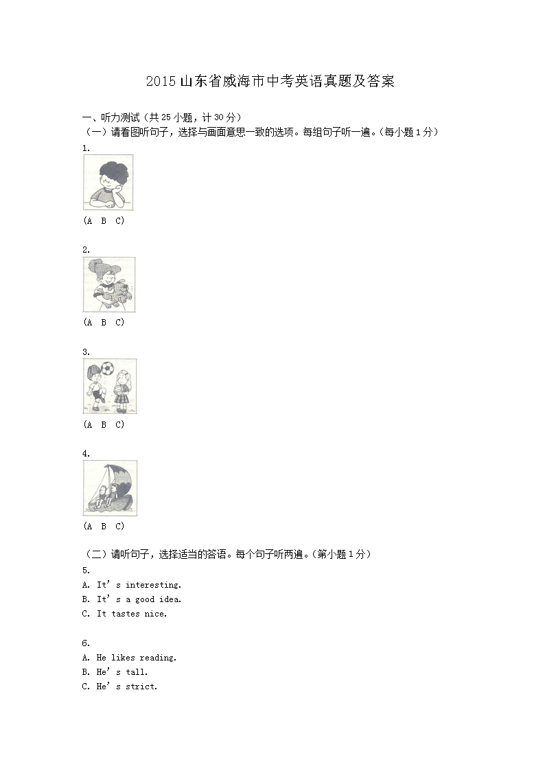 【文档名称】 2015山东省威海市中考英语真题及答案(Word版).doc