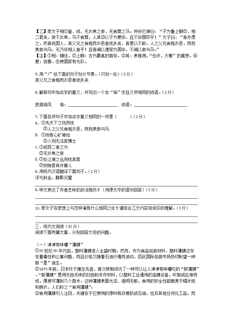 【文档名称】 2009山东省济南市中考语文真题(Word版).doc