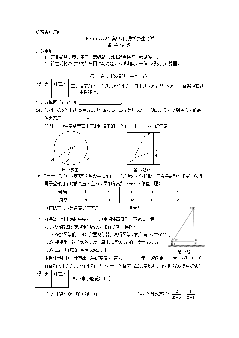 【文档名称】 2009山东省济南市中考数学真题及答案(Word版).doc