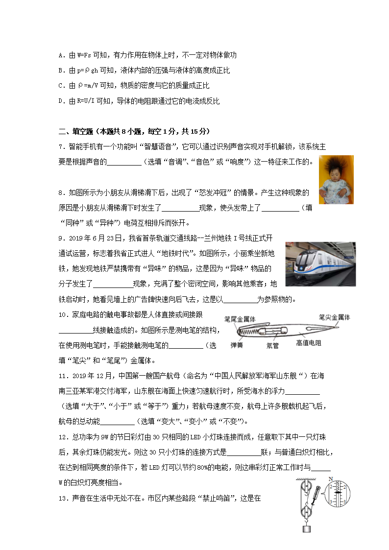 【文档名称】 2020年甘肃省定西市中考物理真题及答案(Word版).doc