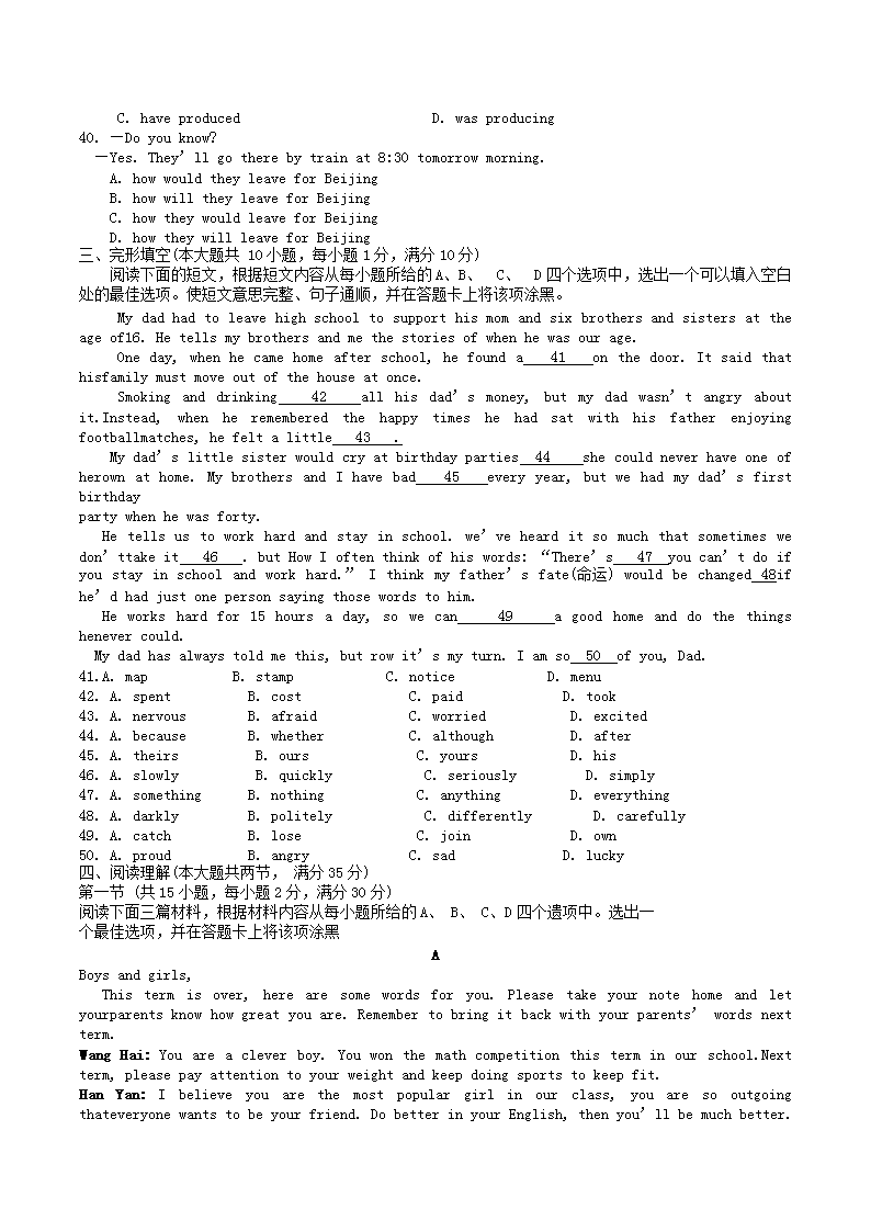 【文档名称】 2020年湖北省襄阳市中考英语真题及答案(Word版).doc
