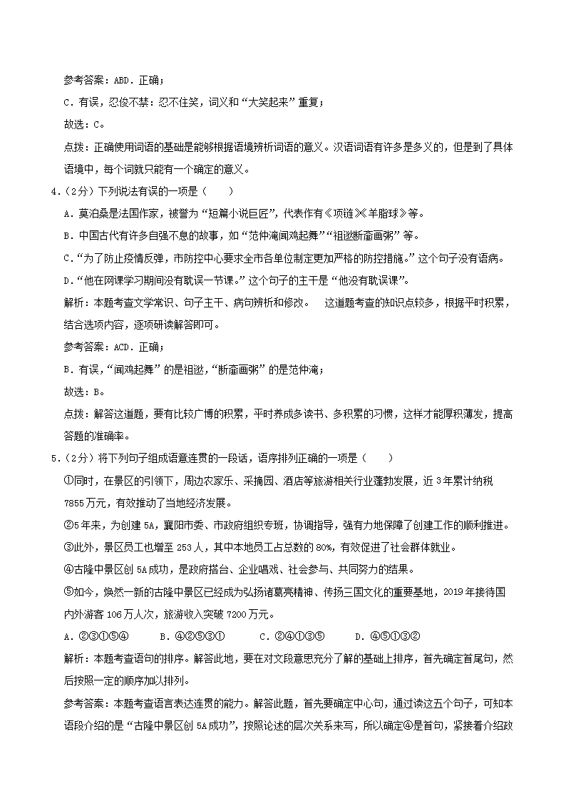 【文档预览】 无忧考网整理发布2020年湖北省襄阳市中考语文真题及答案(Word版),前五页预览如下: