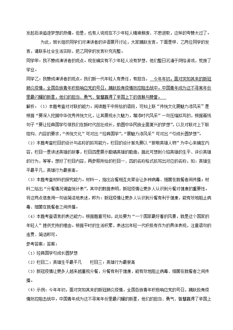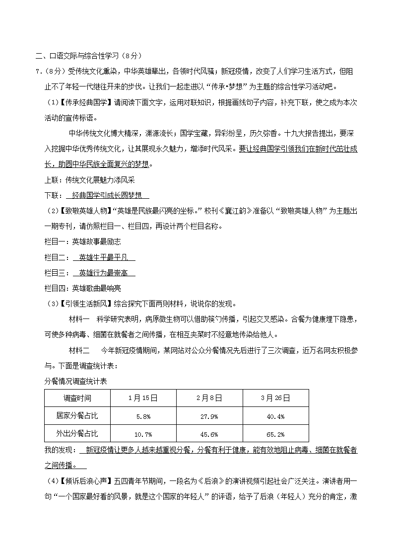 【文档名称】 2020年湖北省襄阳市中考语文真题及答案(Word版).doc