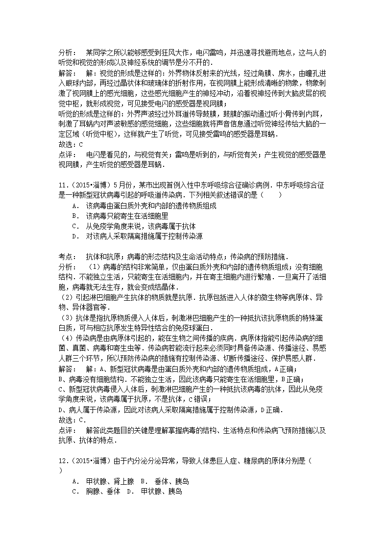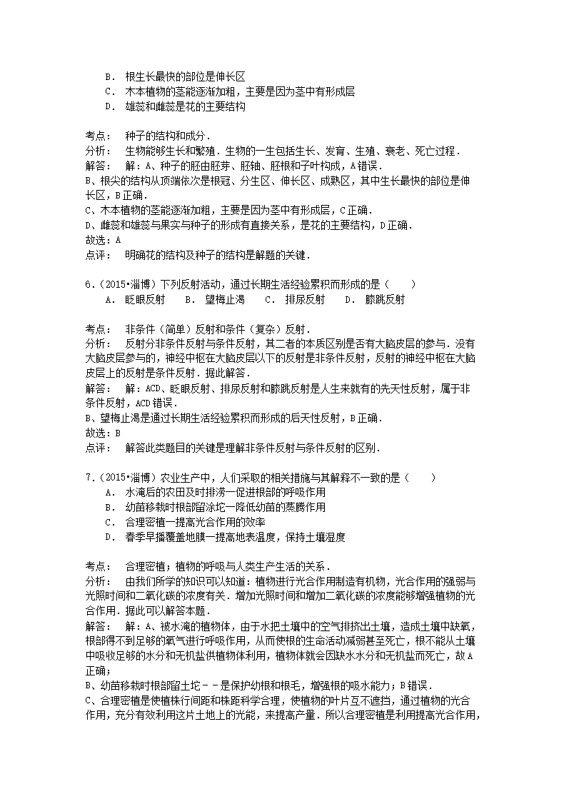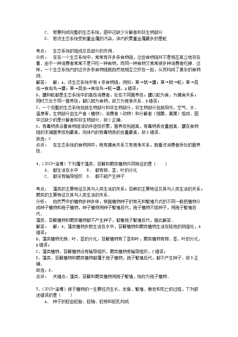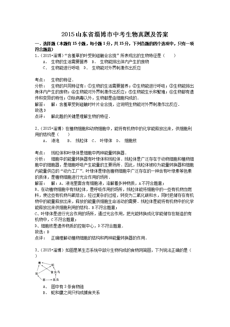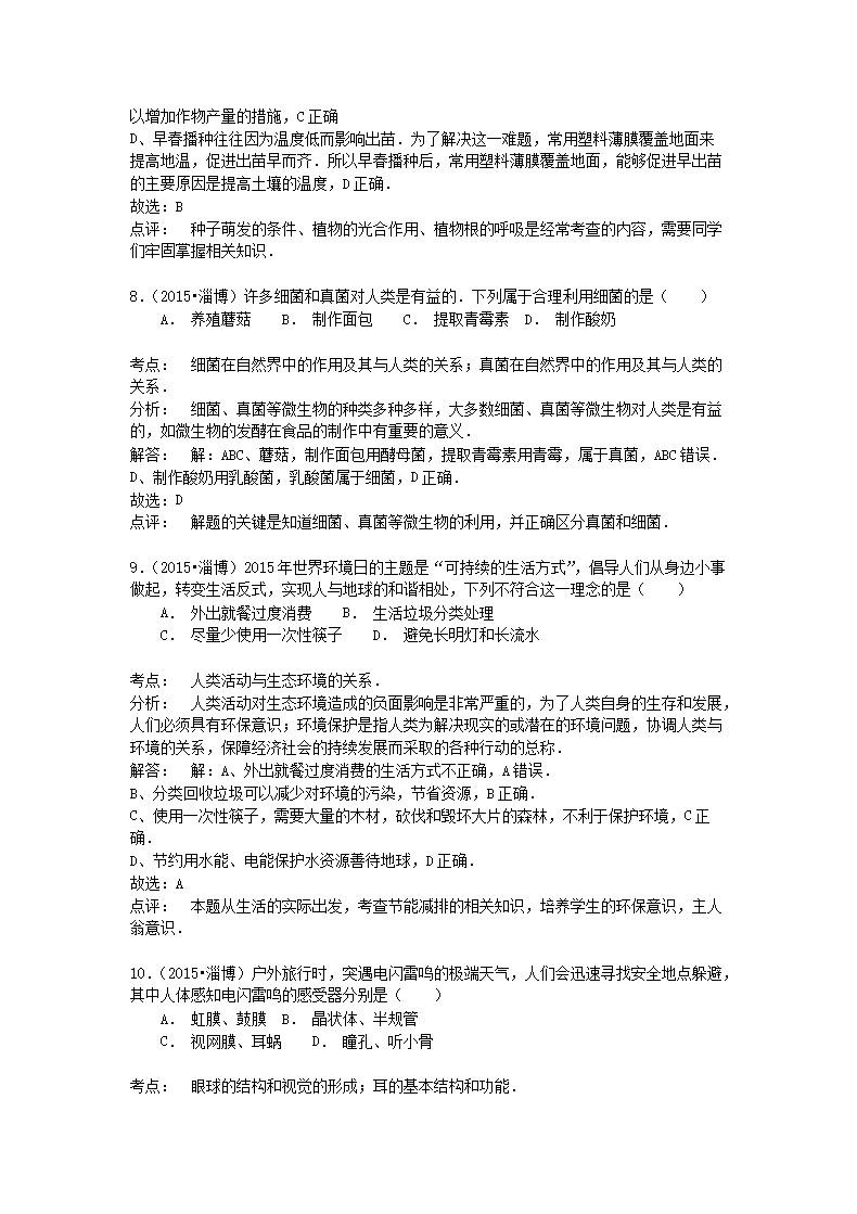 【文档名称】 2015山东省淄博市中考生物真题及答案(Word版).doc