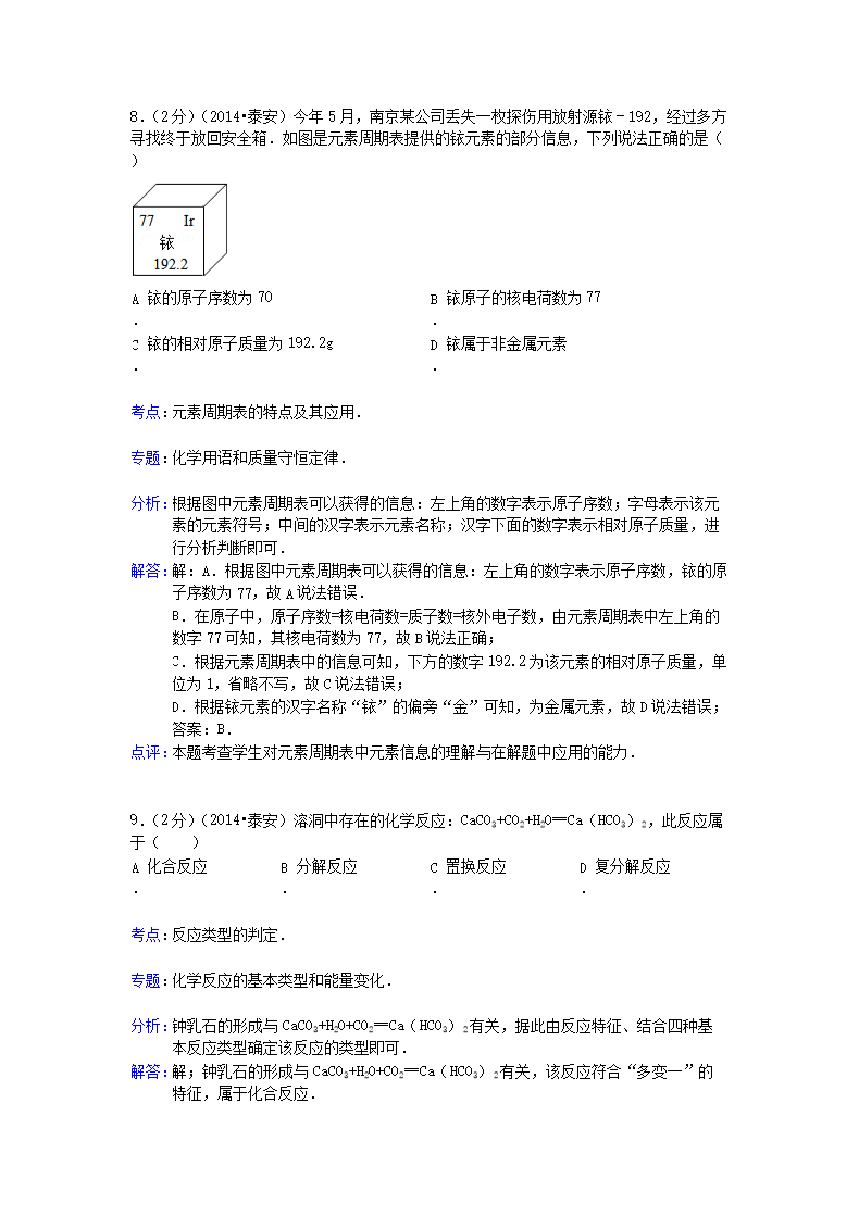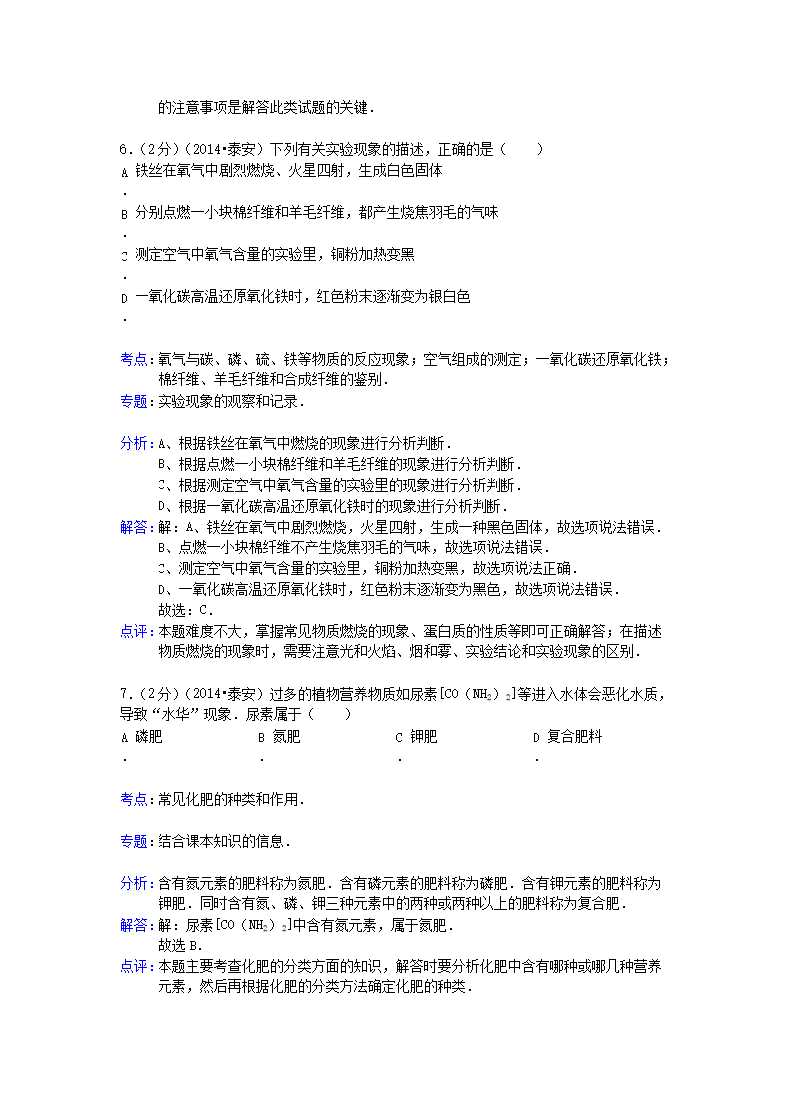 【文档预览】 无忧考网整理发布2014山东省泰安市中考化学真题及答案(Word版),前五页预览如下: