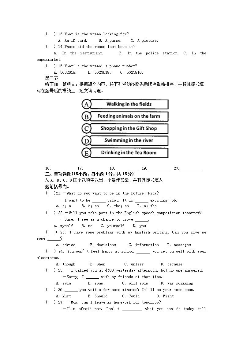 【文档名称】 2011年河南南阳中考英语真题及答案(Word版).doc