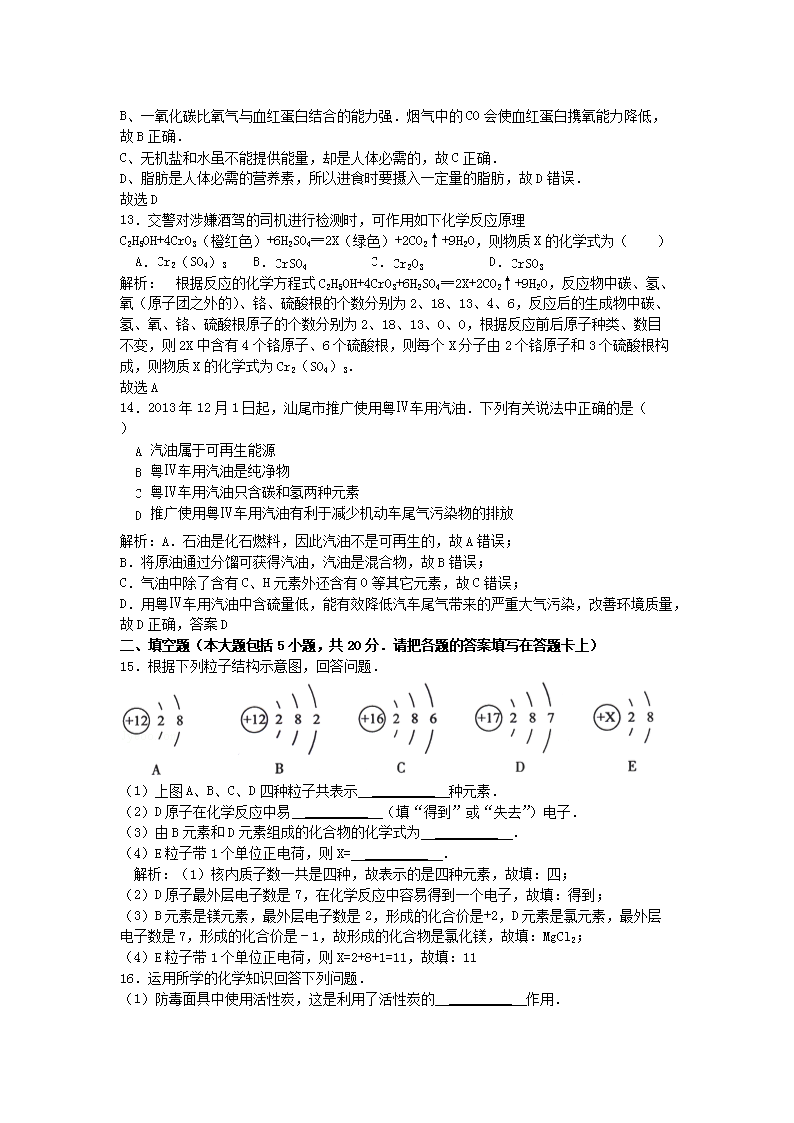 【文档名称】 2014年广东省汕尾市中考化学真题及答案(Word版).doc