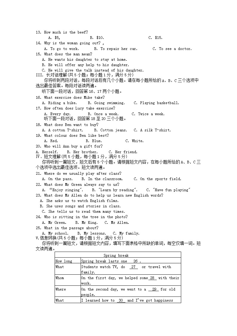 【文档名称】 2014年安徽亳州中考英语真题及答案(Word版).doc