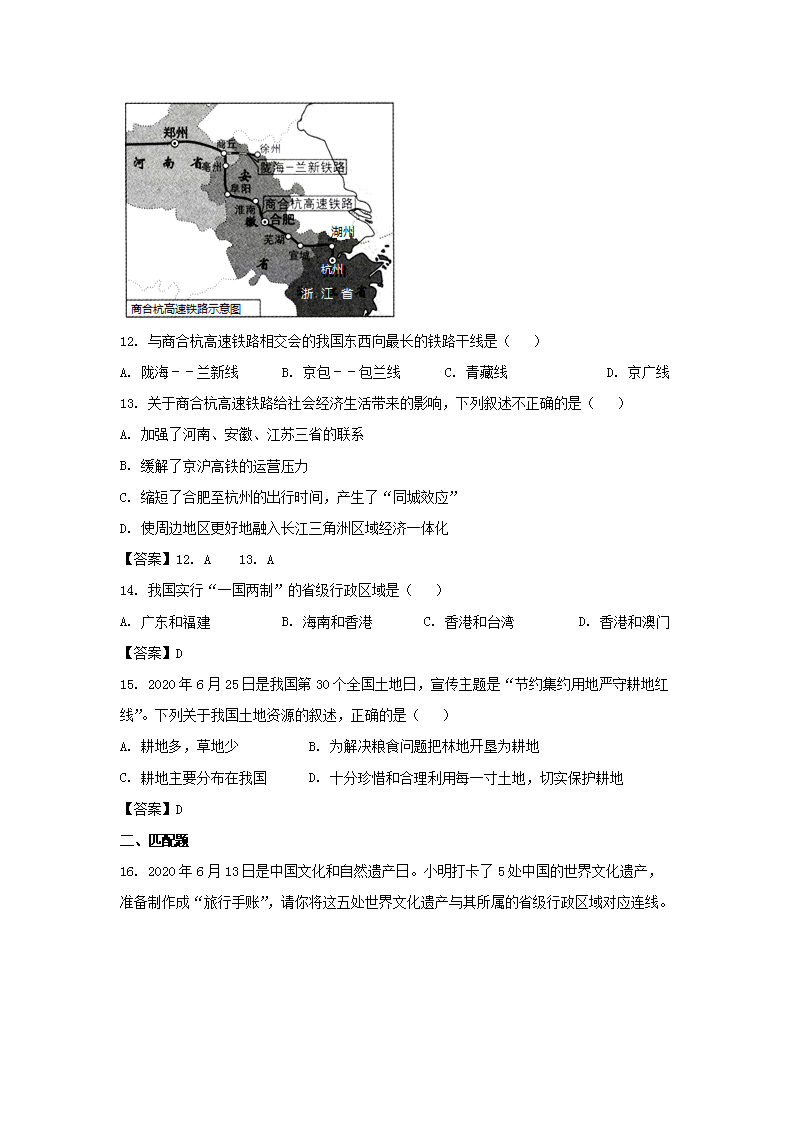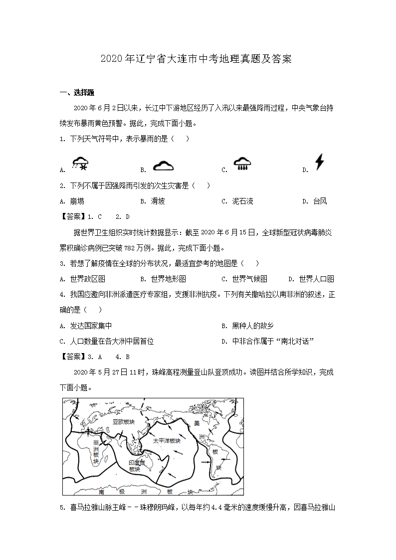 【文档预览】 无忧考网整理发布2020年辽宁省大连市中考地理真题及答案(Word版),前五页预览如下: