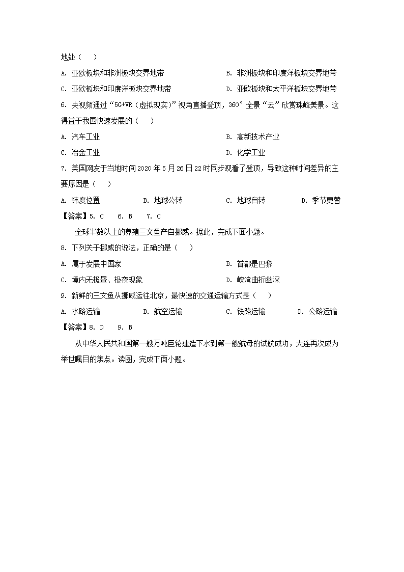 【文档名称】 2020年辽宁省大连市中考地理真题及答案(Word版).doc