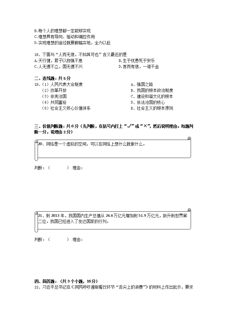 【文档预览】 无忧考网整理发布2013年贵州黔东南州中考思想品德真题及答案(Word版),前五页预览如下: