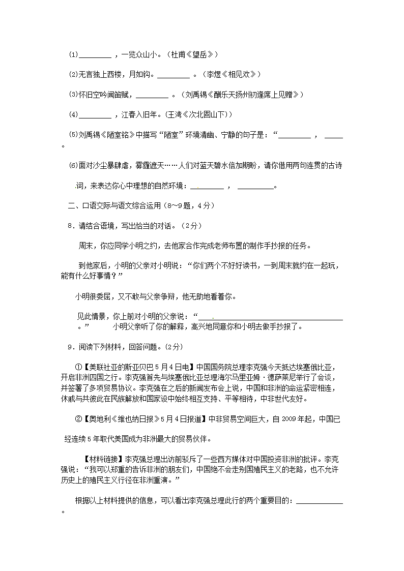 【文档名称】 2014年云南德宏中考语文真题及答案(Word版).doc