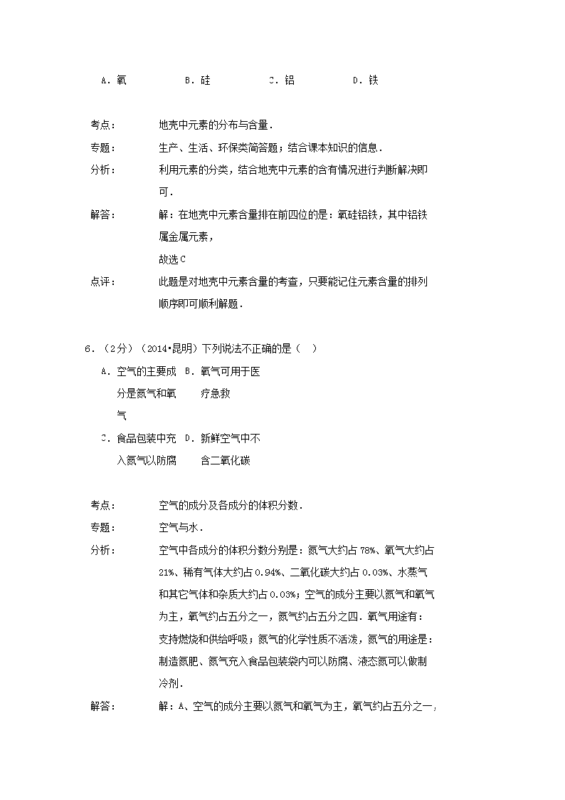 【文档名称】 2014年云南德宏中考化学真题及答案(Word版).doc