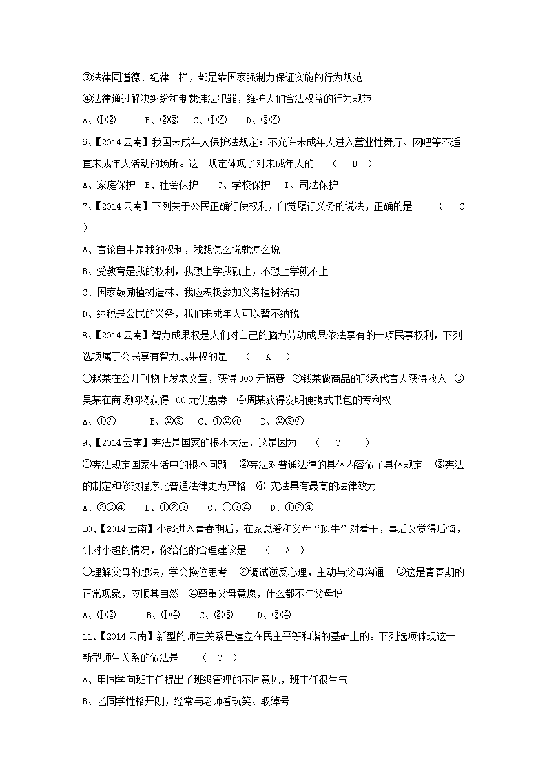 【文档名称】 2014年云南德宏中考道德与法治真题及答案(Word版).doc