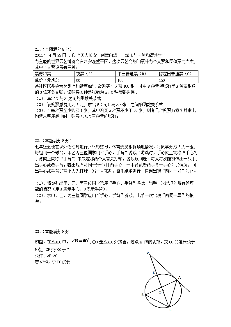 【文档预览】 无忧考网整理发布2011年陕西省汉中中考数学真题及答案(Word版),前五页预览如下: