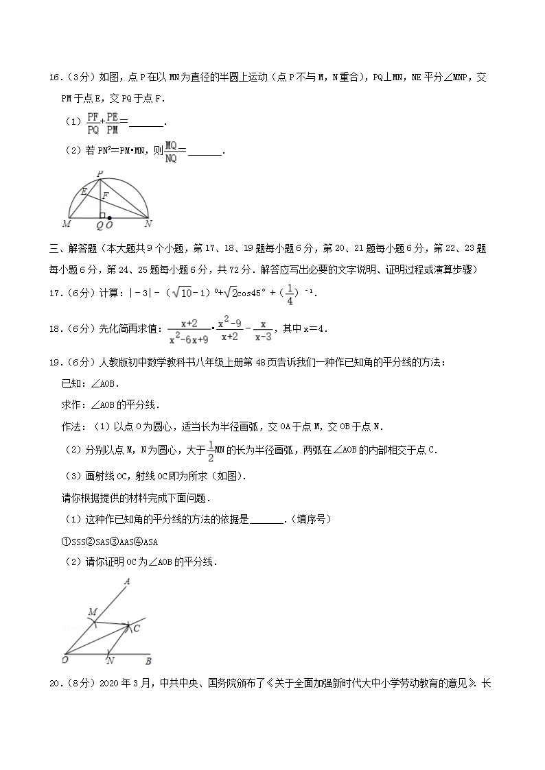 【文档预览】 无忧考网整理发布2020年湖南省长沙市中考数学真题及答案(Word版),前五页预览如下: