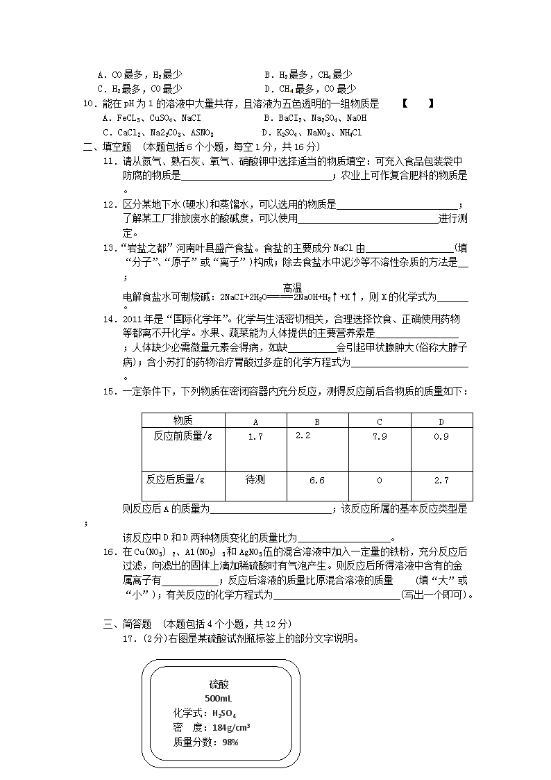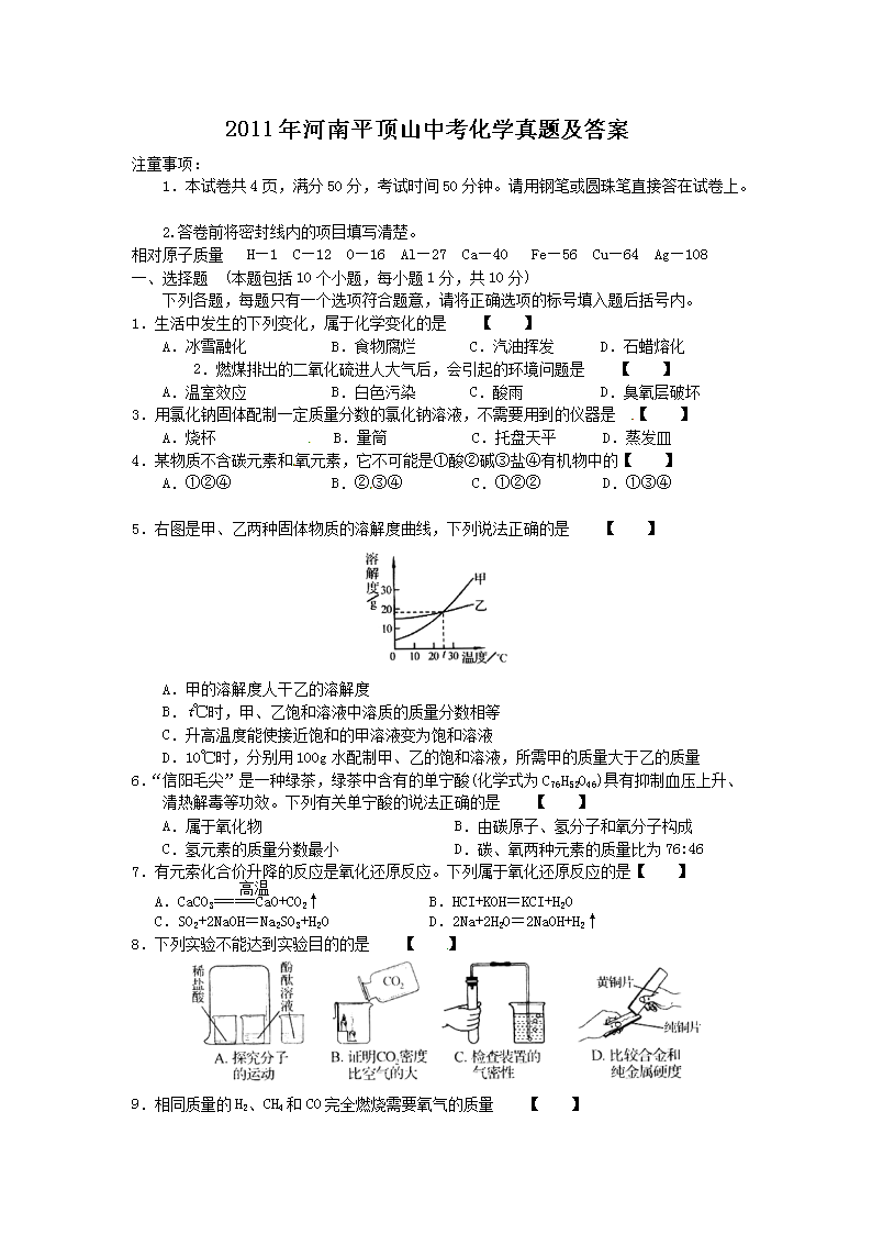 【文档名称】 2011年河南平顶山中考化学真题及答案(Word版).doc
