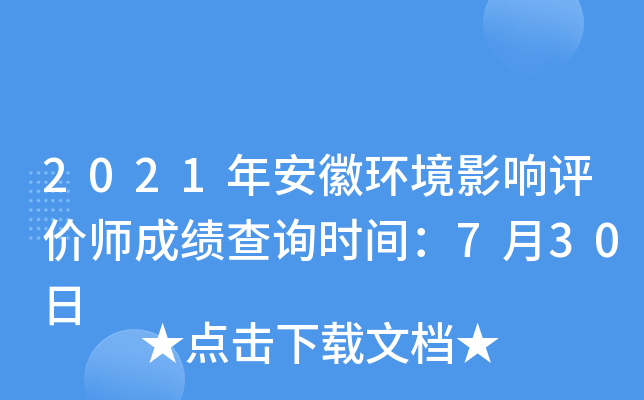 【#环境影响评价师# #2021年安徽环境影响评价师成绩查询时间:7月30日#】2021年安徽环境影响评价师考试成绩现已公布!©无忧考网从中国人事考试网获悉,2021年安徽环境影响评价师成绩查询时间从7月30日起,考生可通过查分在线查询考试成绩,小编在这里预祝大家顺利取证!