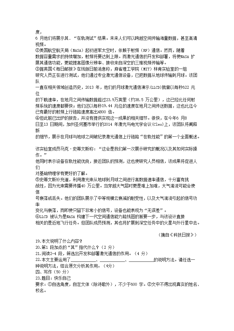 【文档名称】 2014山东省威海市中考语文真题及答案(Word版).doc