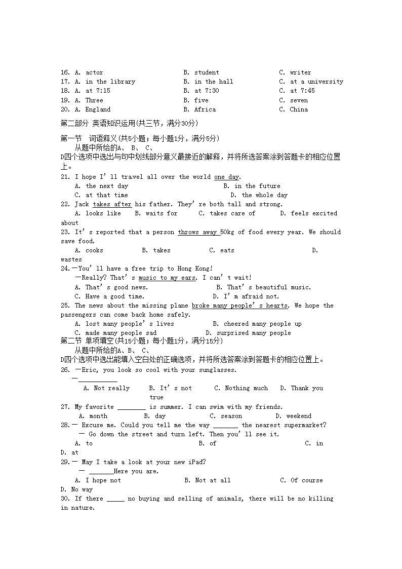 【文档名称】 2014年云南迪庆中考英语真题及答案(Word版).doc