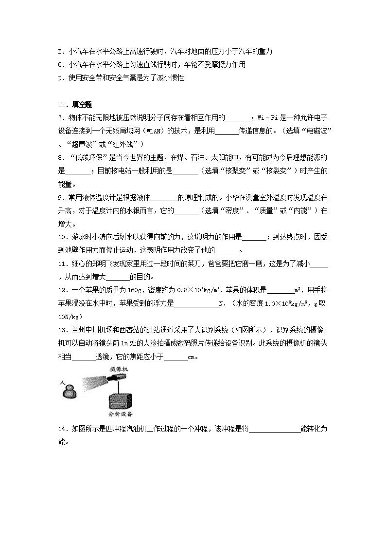 【文档名称】 2019年甘肃省酒泉市中考物理真题及答案(Word版).doc
