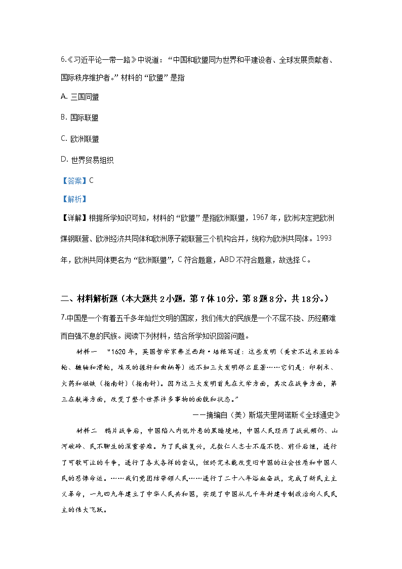 【文档预览】 无忧考网整理发布2019年甘肃省陇南市中考历史真题及答案(Word版),前五页预览如下: