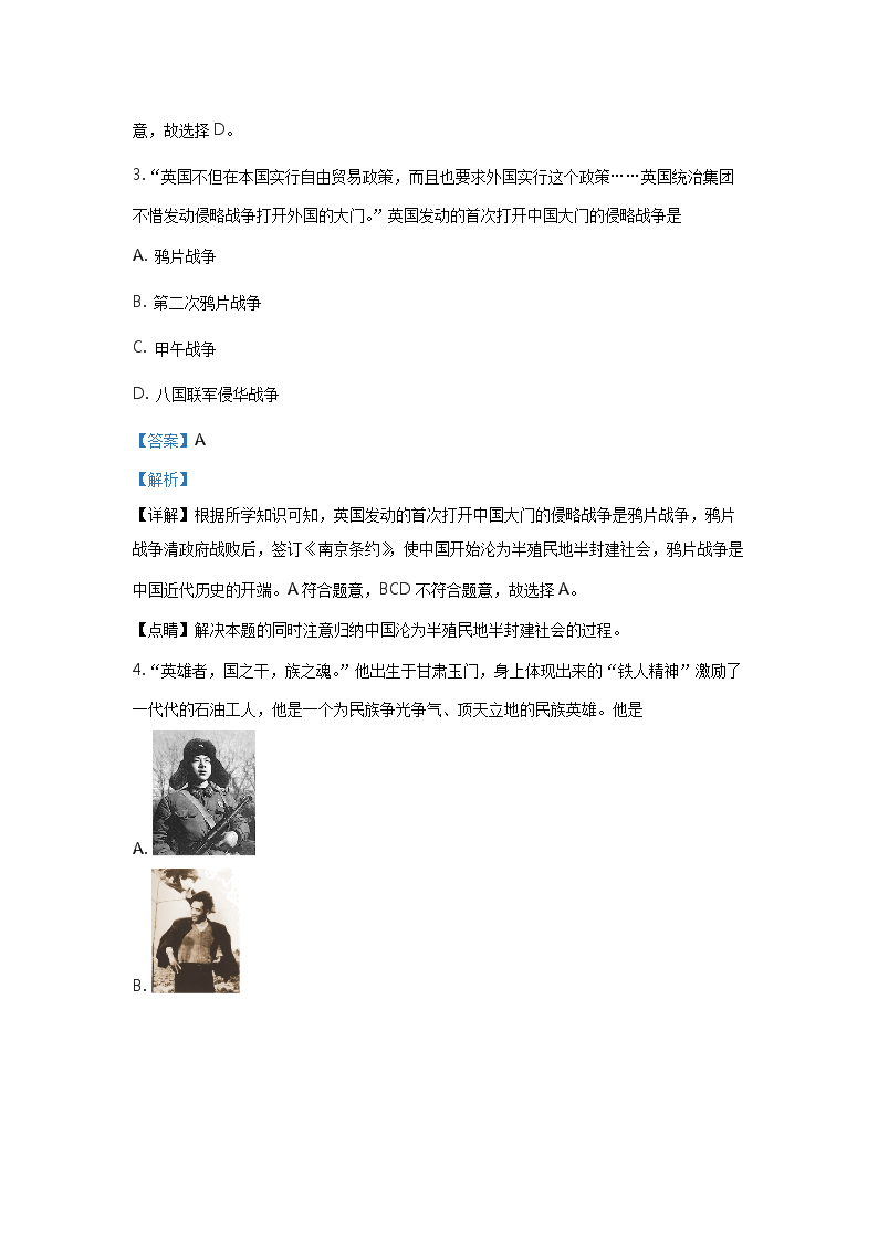 【文档名称】 2019年甘肃省陇南市中考历史真题及答案(Word版).doc