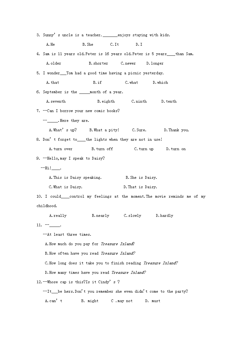 【文档预览】 无忧考网整理发布2019年甘肃省陇南市中考英语真题及答案(Word版),前五页预览如下: