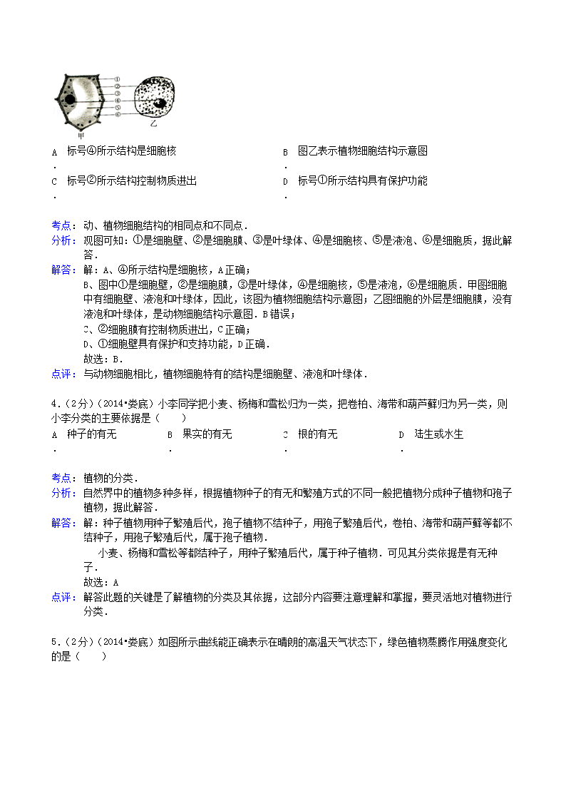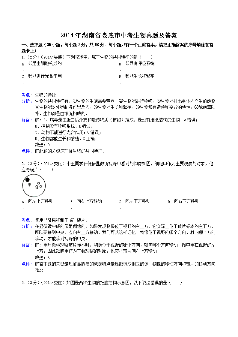 【文档预览】 无忧考网整理发布2014年湖南省娄底市中考生物真题及答案(Word版),前五页预览如下: