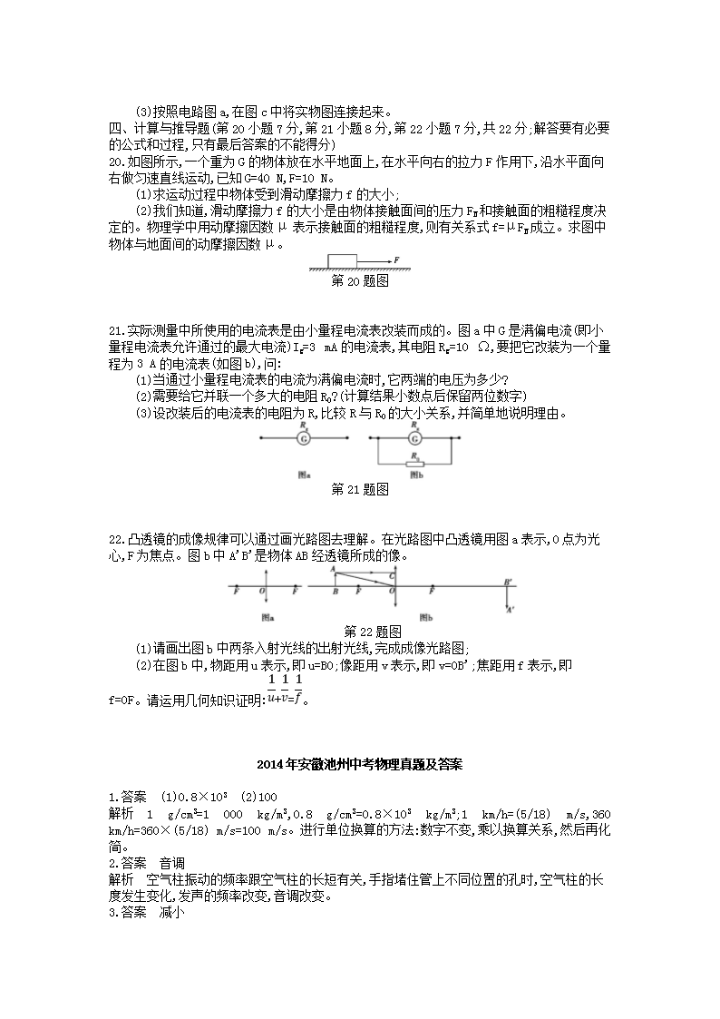 【文档预览】 无忧考网整理发布2014年安徽池州中考物理真题及答案(Word版),前五页预览如下: