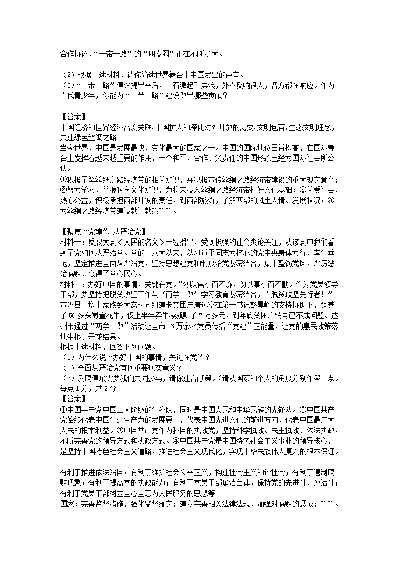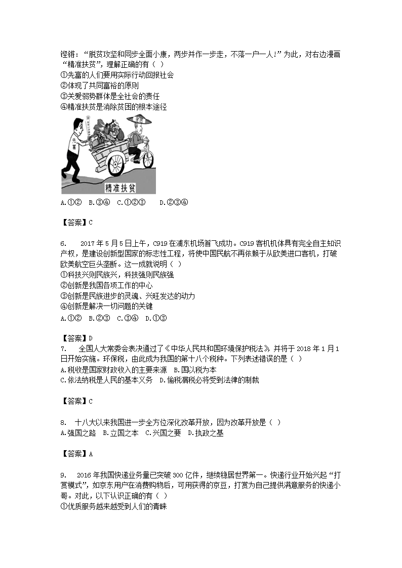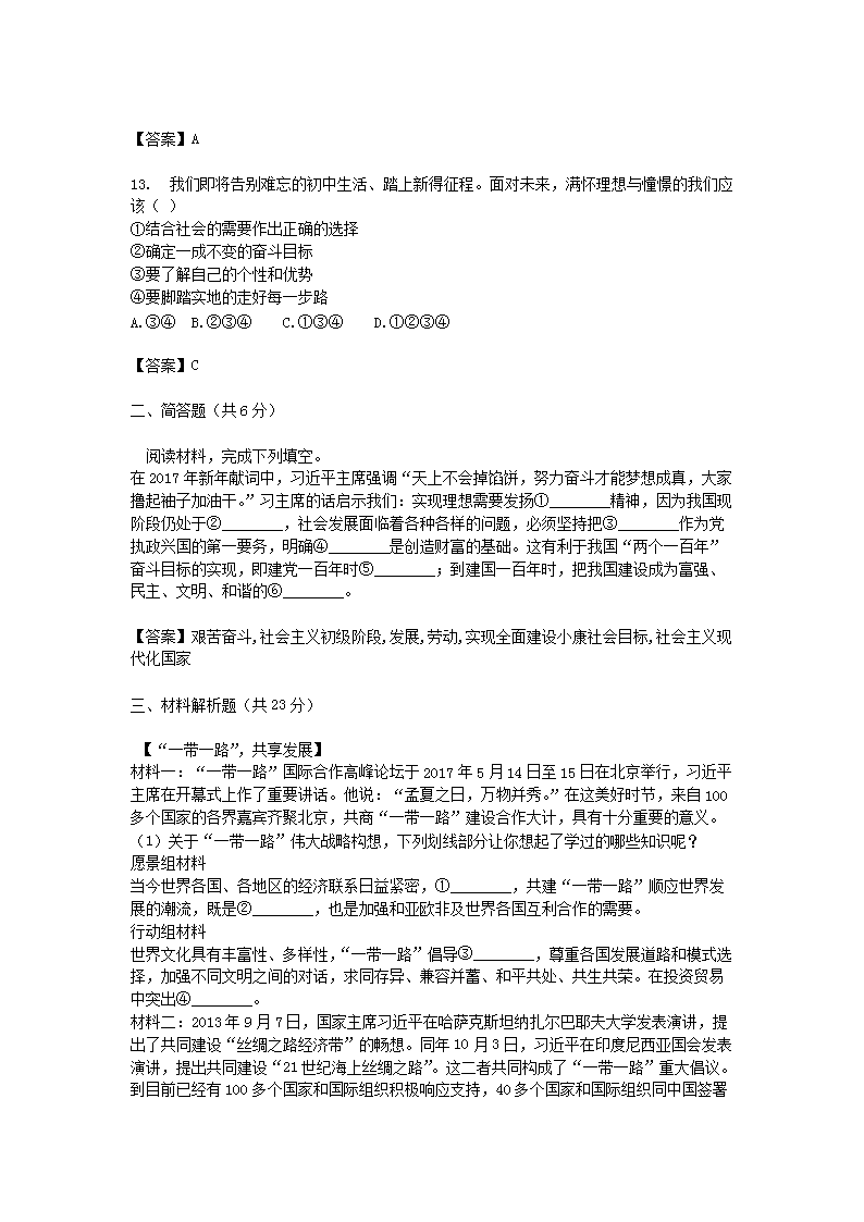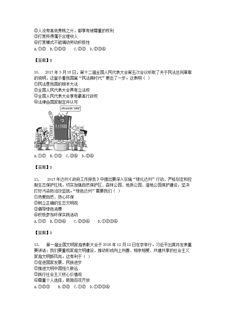 【文档名称】 2017年四川省达州市中考政治真题及答案(Word版).doc