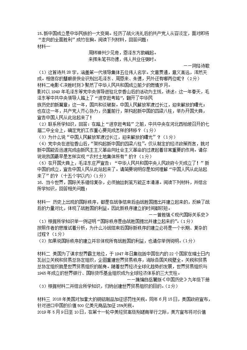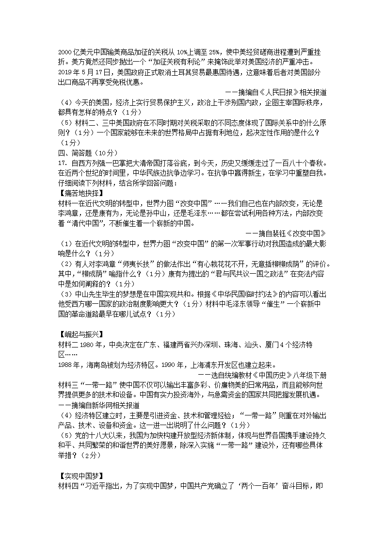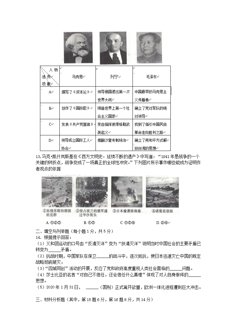 【文档名称】 2020年四川省达州市中考历史真题及答案(Word版).doc