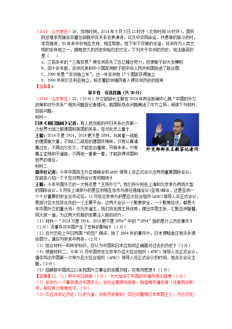 【文档名称】 2014山东省枣庄市中考历史真题及答案(Word版).doc