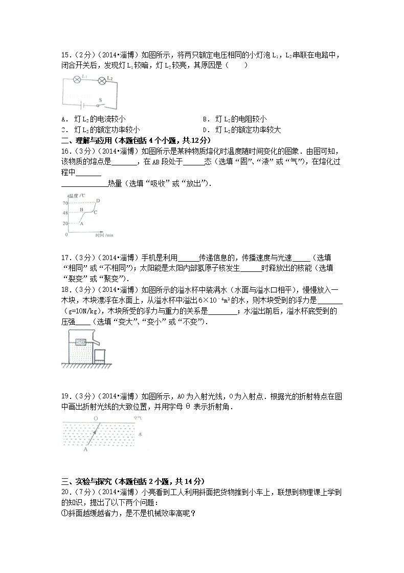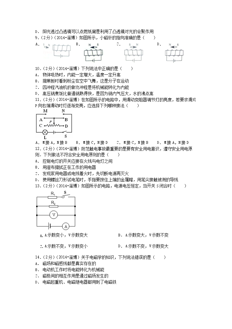 【文档名称】 2014山东省淄博市中考物理真题及答案(Word版).doc