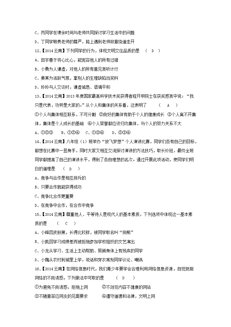 【文档名称】 2014年云南红河中考道德与法治真题及答案(Word版).doc