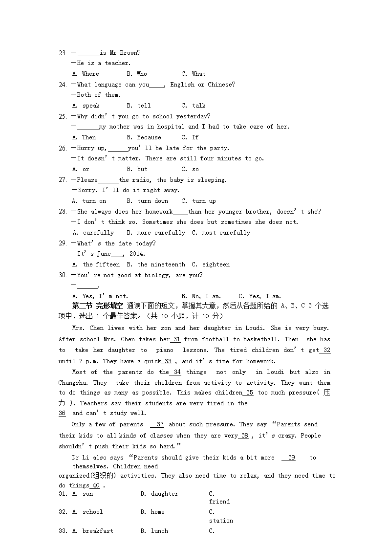 【文档预览】 无忧考网整理发布2014年湖南省娄底市中考英语真题及答案(Word版),前五页预览如下: