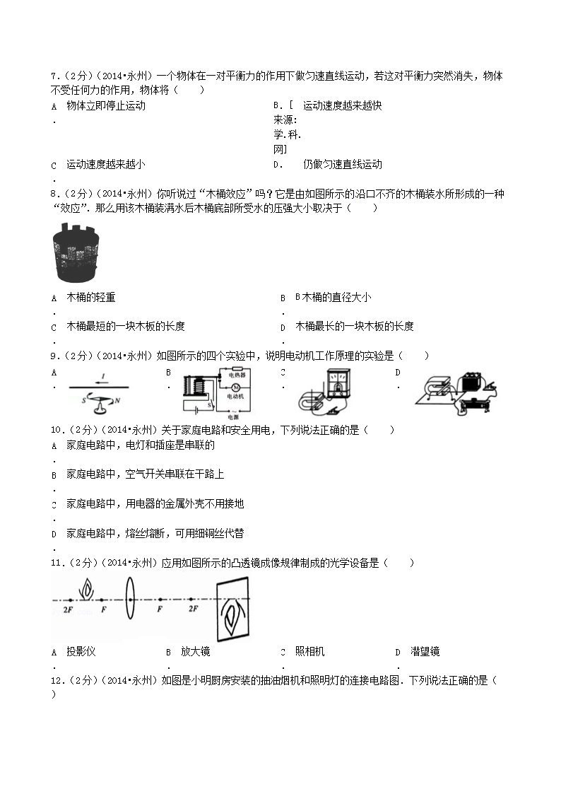 【文档预览】 无忧考网整理发布2014年湖南省永州市中考物理真题及答案(Word版),前五页预览如下: