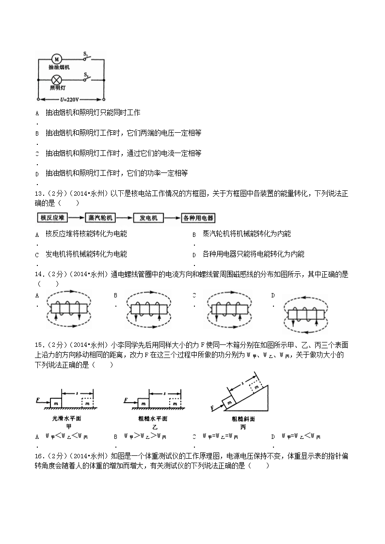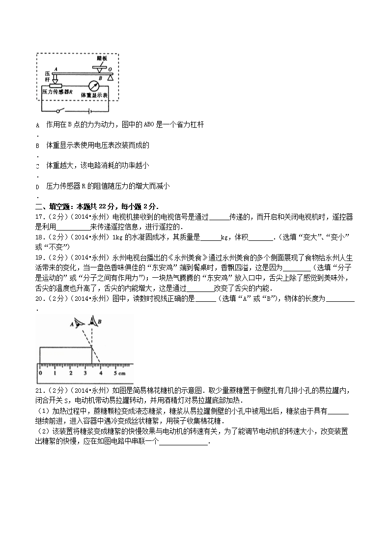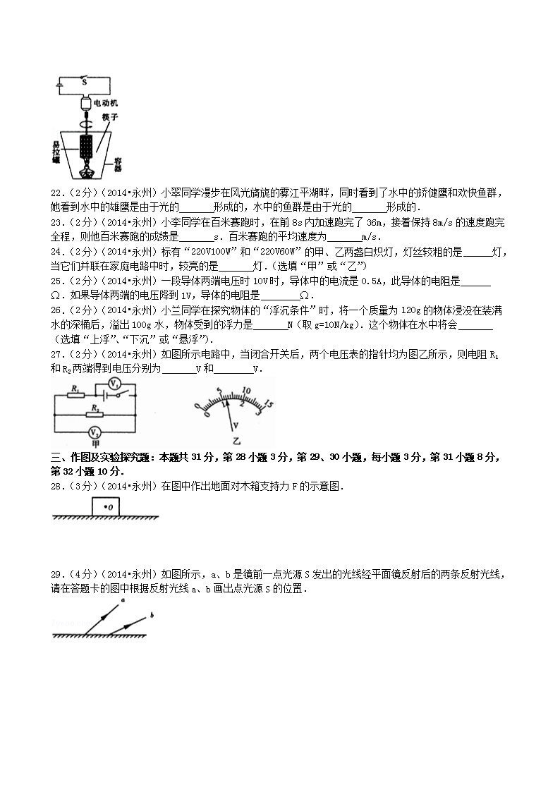 【文档名称】 2014年湖南省永州市中考物理真题及答案(Word版).doc