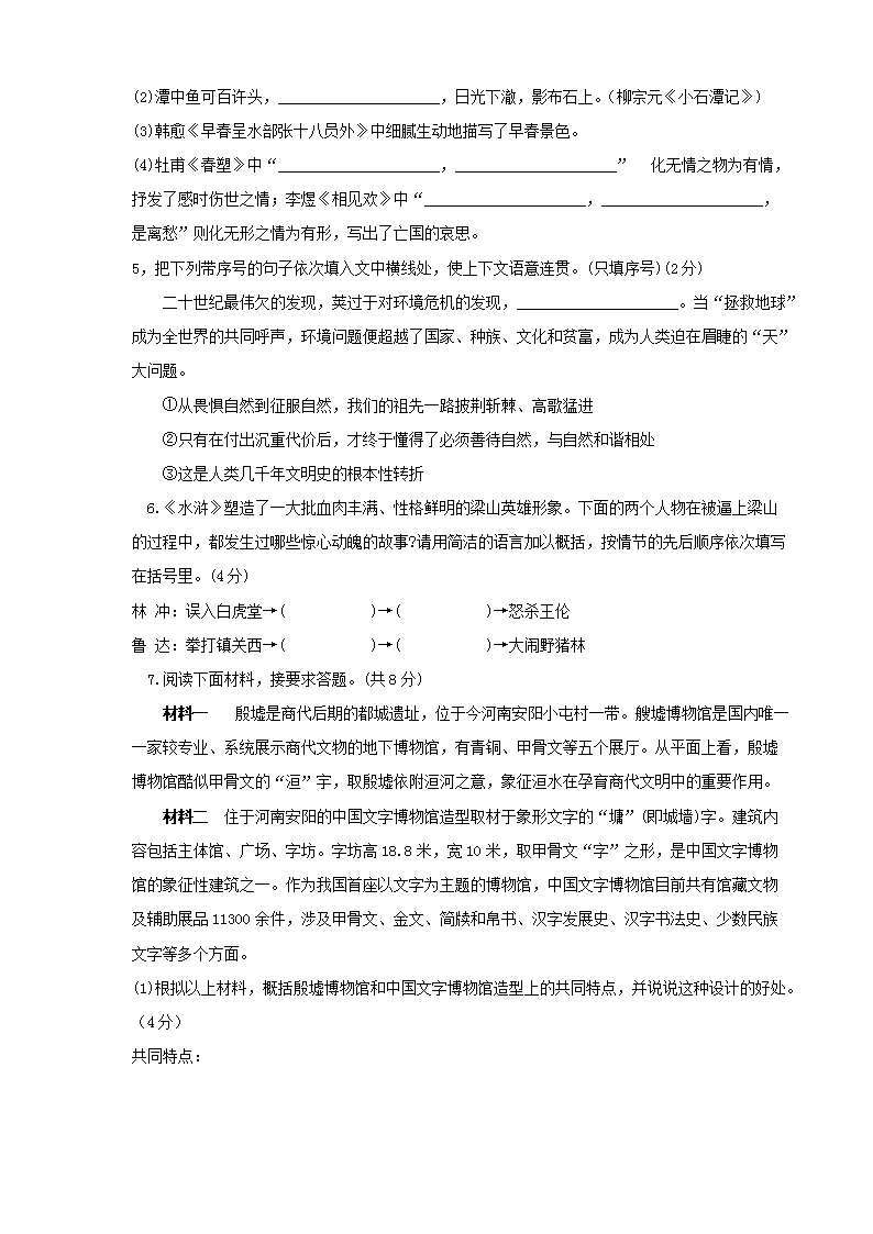 【文档名称】 2010年河南郑州中考语文真题及答案(Word版).doc