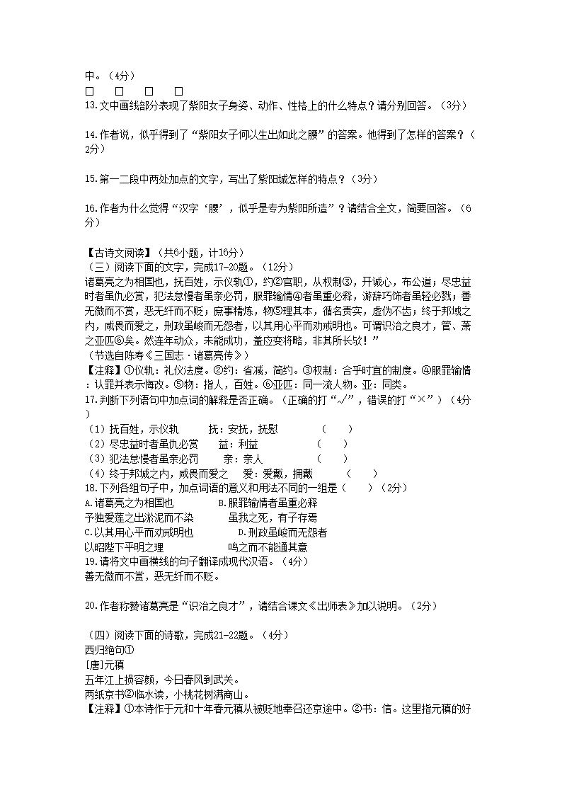 【文档预览】 无忧考网整理发布2011年陕西省榆林中考语文真题及答案(Word版),前五页预览如下: