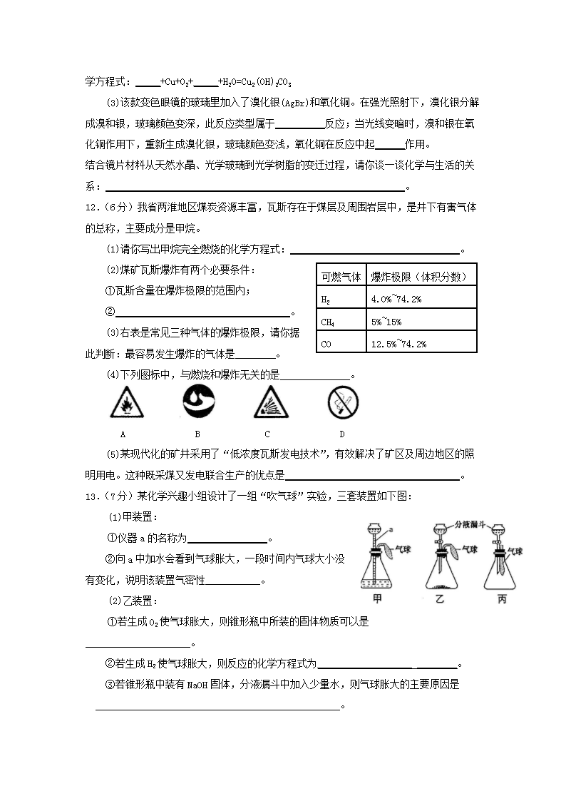 【文档名称】 2014年安徽滁州中考化学真题及答案(Word版).doc