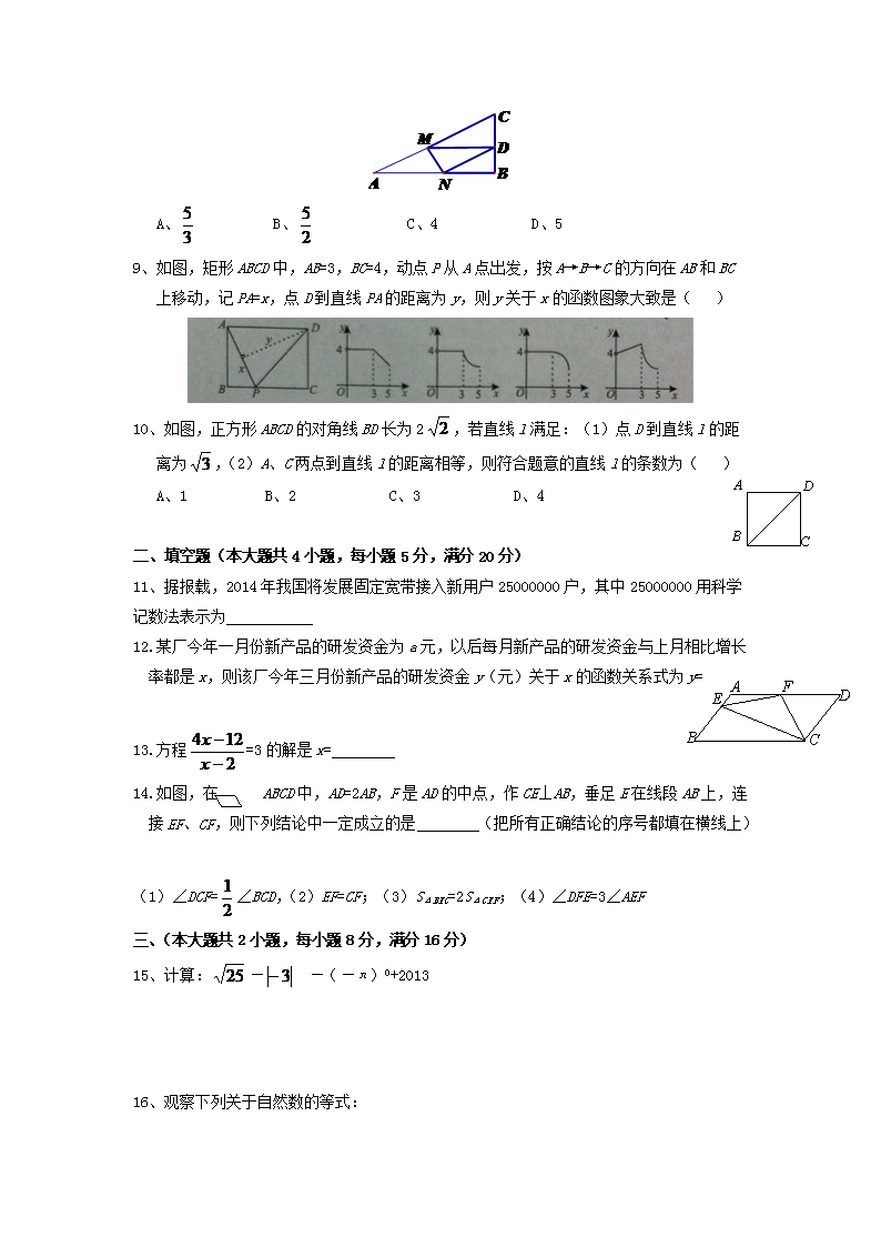 【文档名称】 2014年安徽滁州中考数学真题及答案(Word版).doc