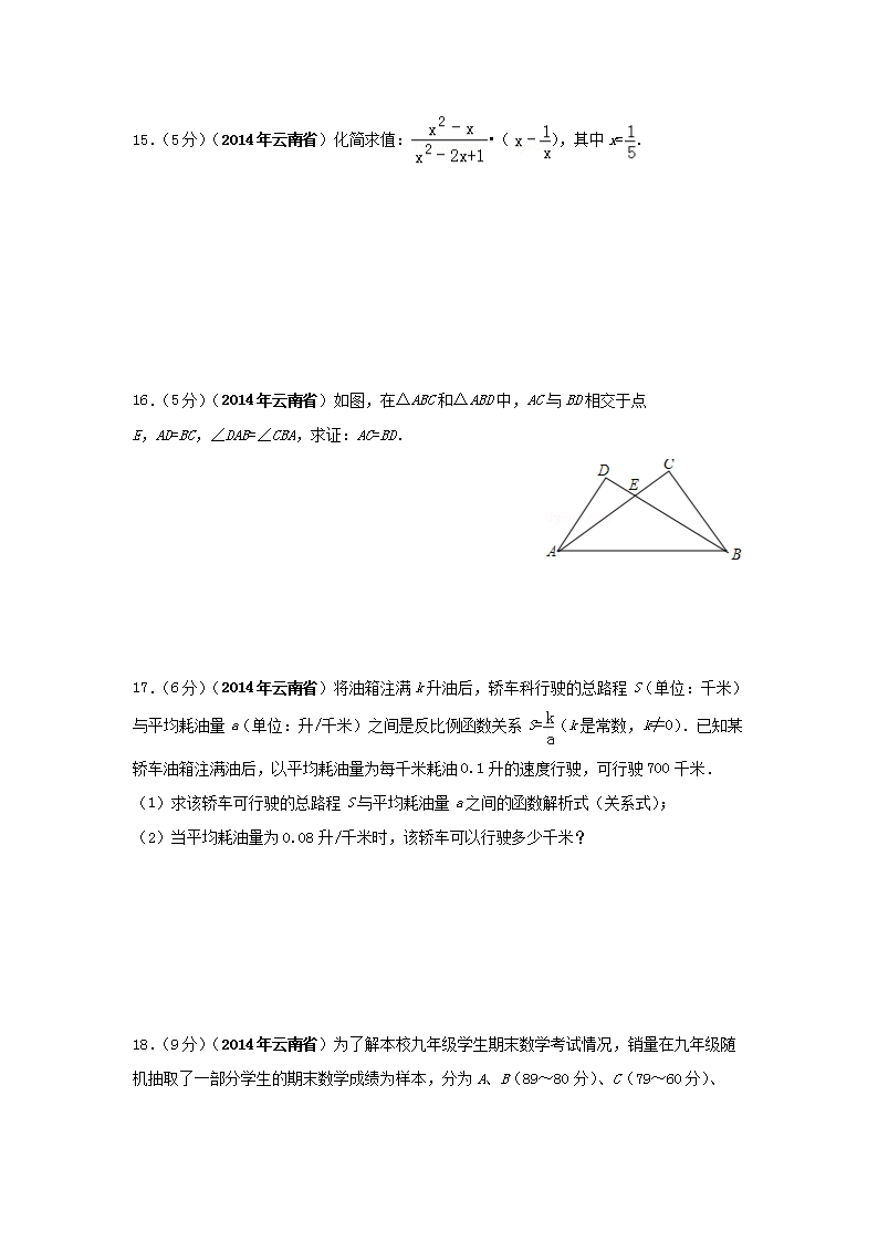 【文档名称】 2014年云南临沧中考数学真题及答案(Word版).doc