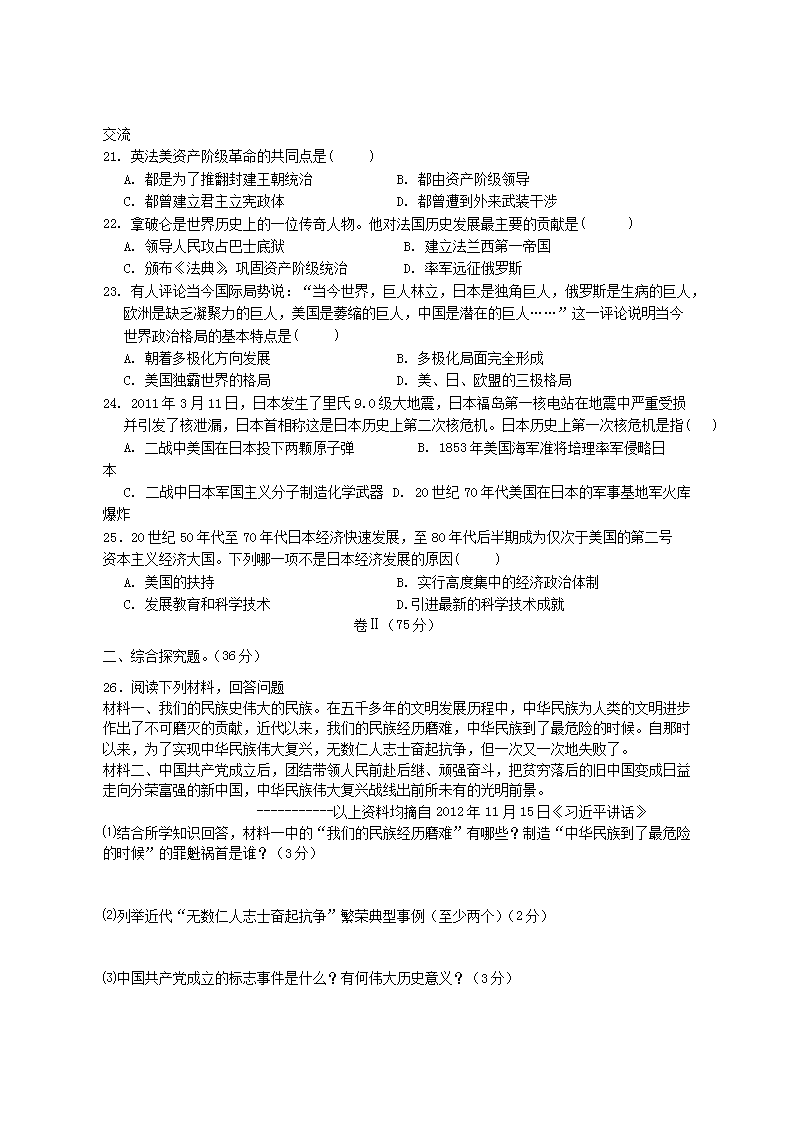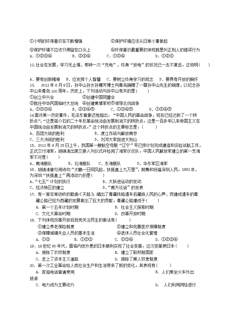 【文档名称】 2013年贵州铜仁中考文综真题及答案(Word版).doc