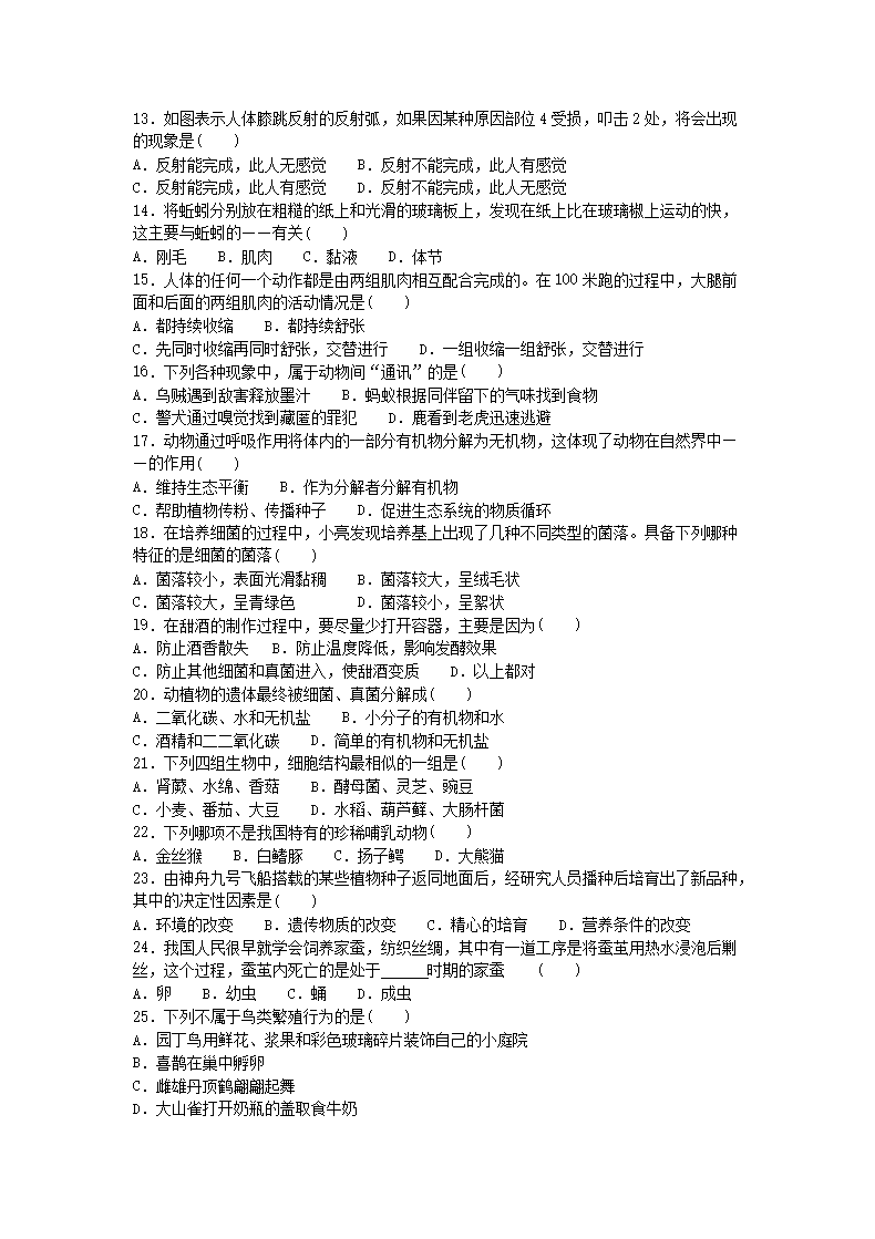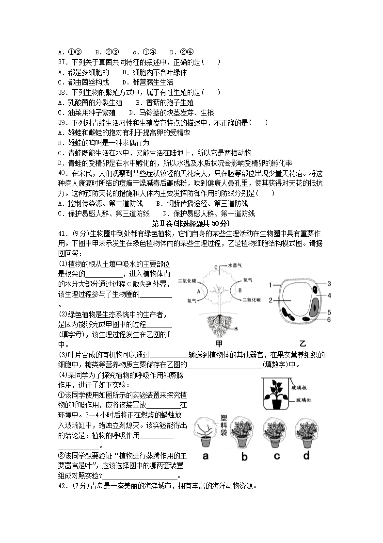 【文档名称】 2013山东省青岛市中考生物真题及答案(Word版).doc
