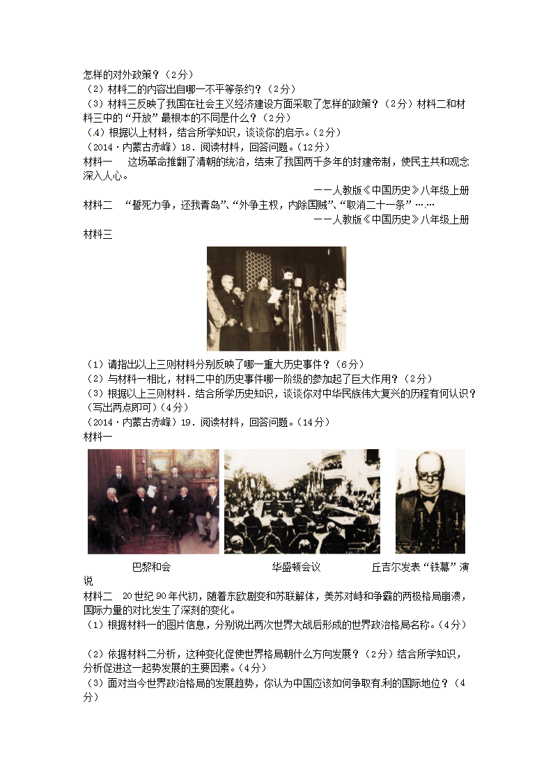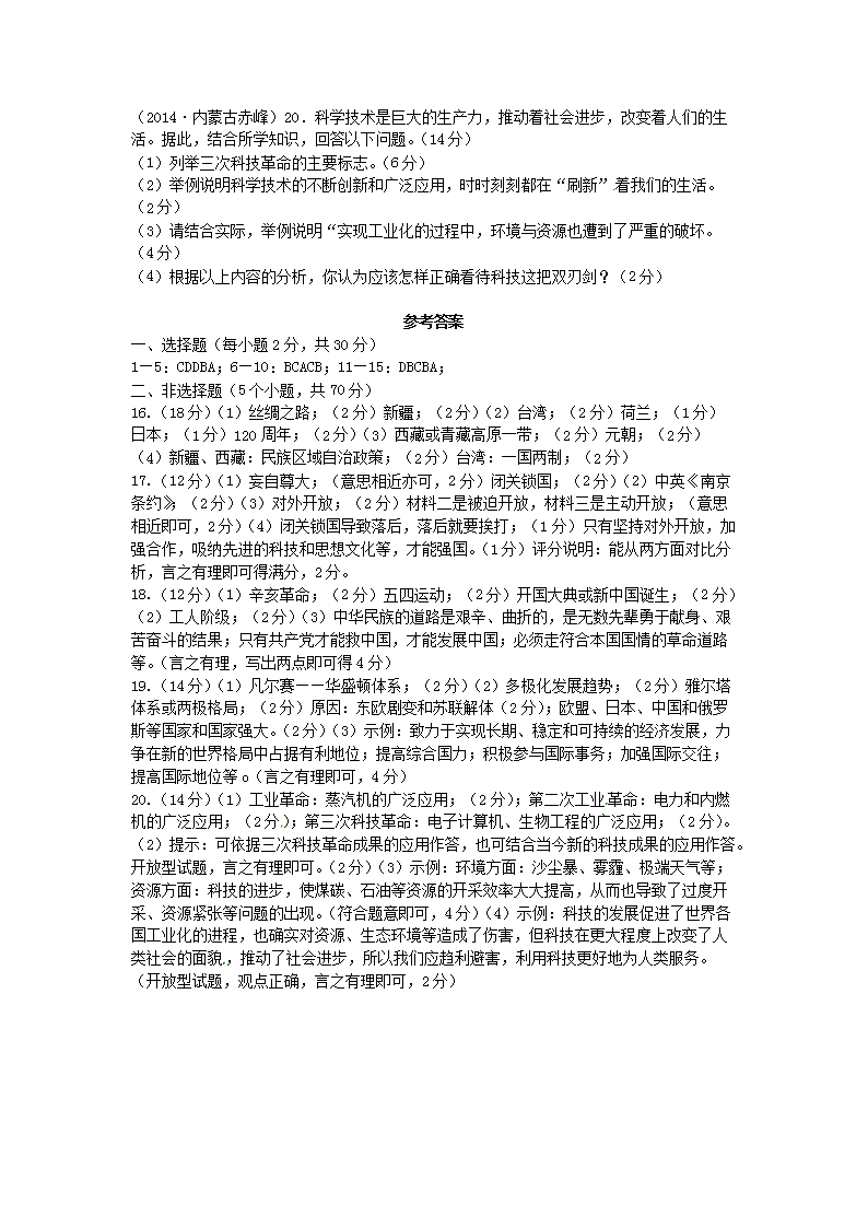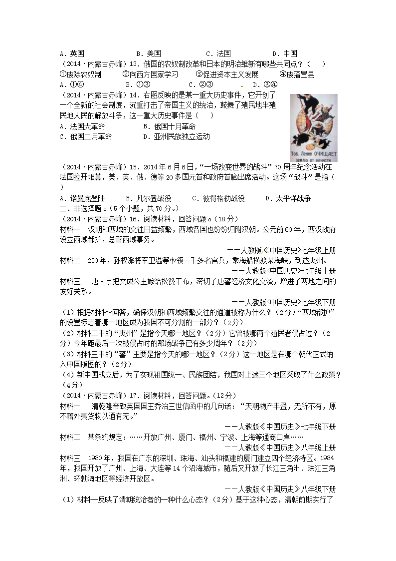 【文档名称】 2014年内蒙古赤峰中考历史真题及答案(Word版).doc