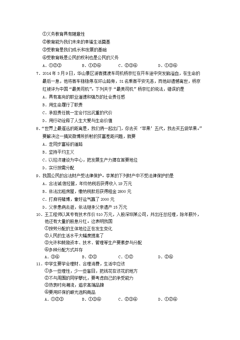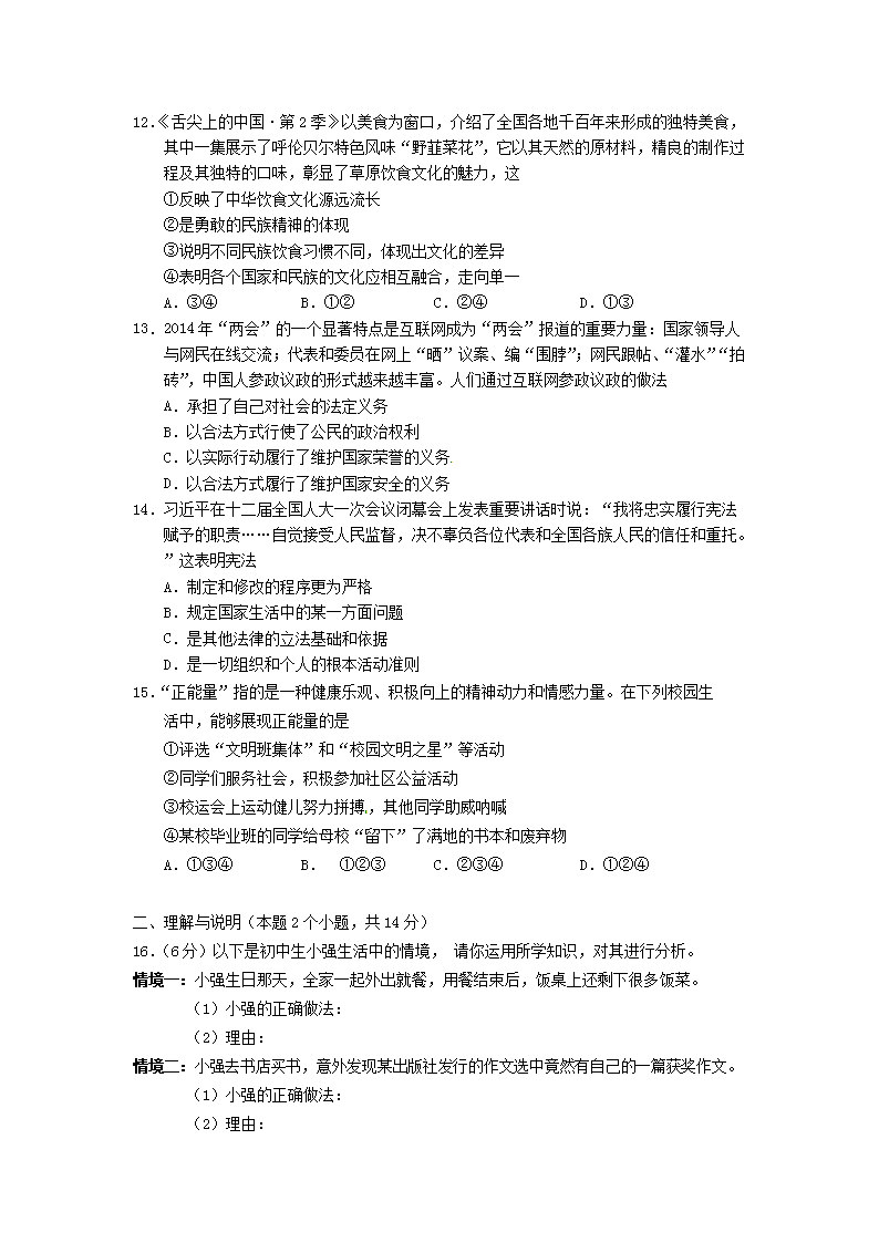 【文档名称】 2014年内蒙古呼伦贝尔中考政治真题及答案(Word版).doc